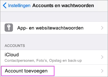 Ga op uw iPhone of iPad naar Instellingen > schuif omlaag en tik op Accounts en wachtwoorden > Account toevoegen.