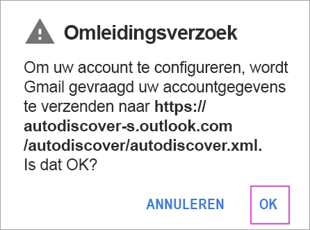 Microsoft 365 werk of school: mogelijk ziet u een scherm Omleidingsaanvraag. Tik op OK.
