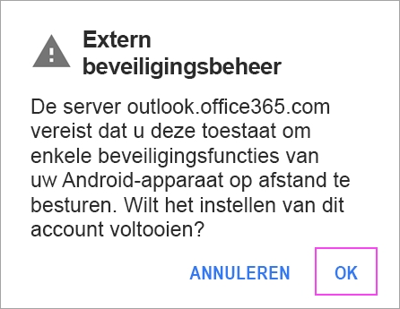 Als u een Microsoft 365 of schoolaccount hebt, wordt u mogelijk ook gevraagd om extern beveiligingsbeheer te bevestigen en aanvullende beveiligingsmaatregelen goed te keuren. Kies in dit geval OK of Activeren.